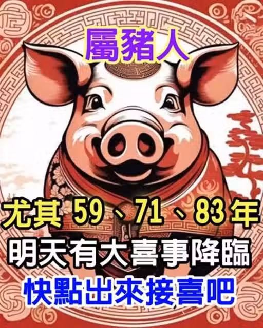 屬豬人,尤其是59年、71年、83年出生的!明天有大喜事降臨,快點出來接喜吧