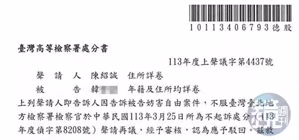去年,夏米雅被爆出與企業家陳紹誠交往,引發各界討論,韓先生也感到震驚。