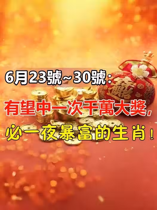 6月23號~30號:有望中一次千萬大獎 ,必一夜暴富的生肖