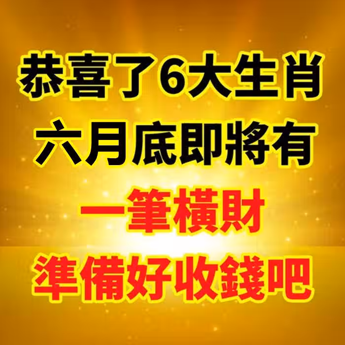 恭喜了6大生肖, 六月底即將有一筆橫財!準備好收錢吧!