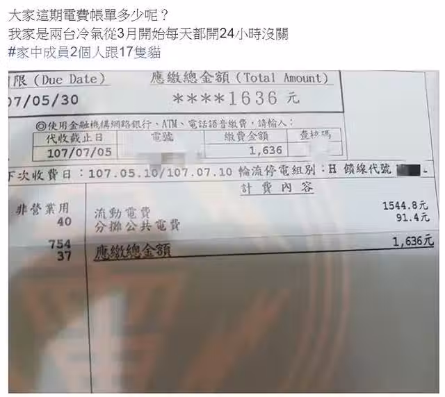 冷氣開整天「2個月電費1636元」被質疑 他決定公開「省錢密技」網友吃驚:不能說的秘密...