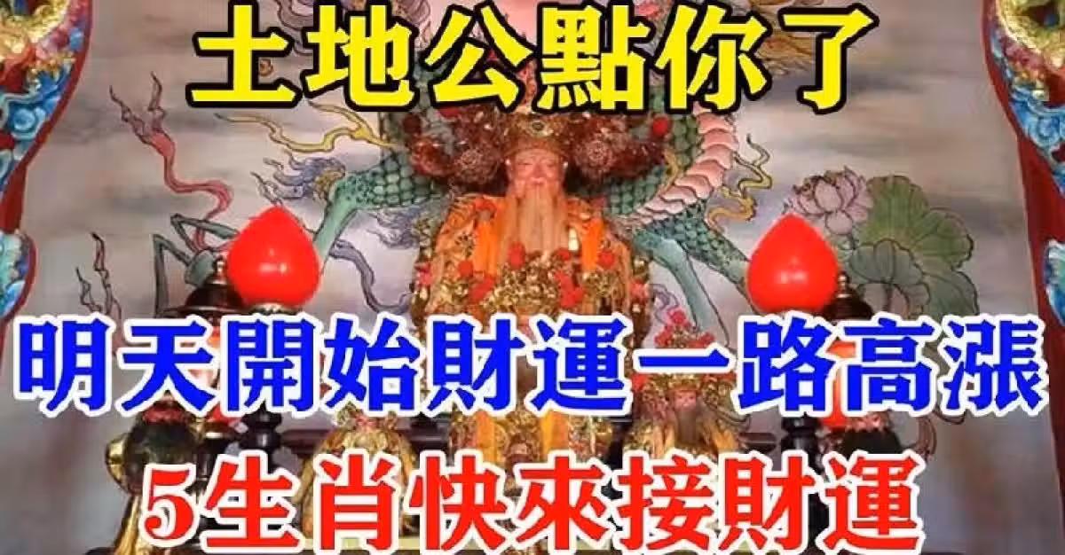 土地公點你了!明天開始財運一路高漲「5生肖」 快來接運!過期不候!