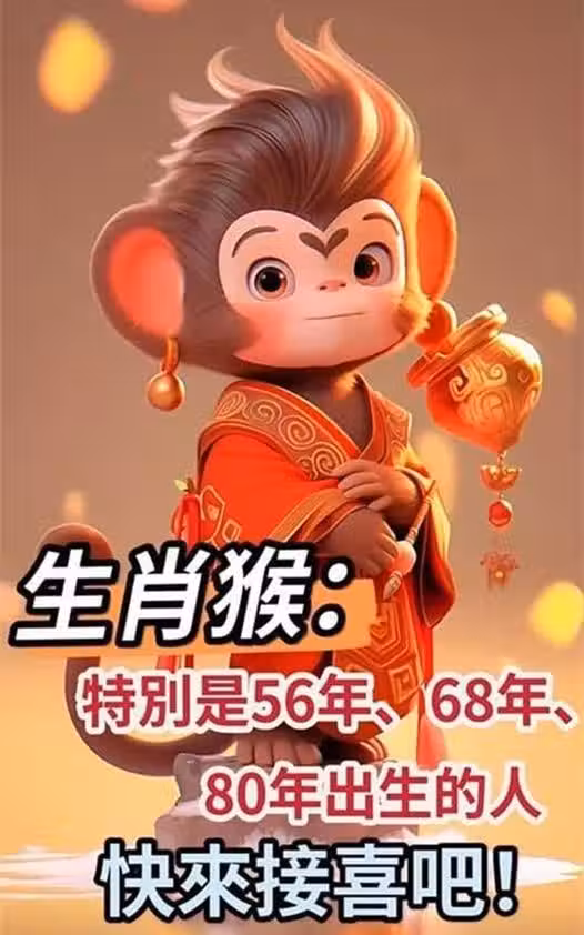 生肖屬猴的人:特別是在56年、68年、80年出生的人,快來接喜吧!