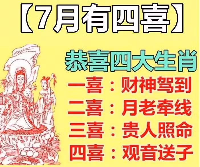 屬馬的人是一位睿智的勇者,他們無論是在順境還是逆境,都能以一顆平常心對待,處事不緊不慢。 恭喜他們,7月財神駕到。 7月生肖馬的運勢可是相當旺盛,假若他們能牢牢把握住機會,則金錢收入穩定提高,錢財滾滾而來,富得流油。 同時喜事進門,單身的生肖馬容易收穫美滿愛情,已婚的屬馬人有極好的添丁運,有望迎來健康聰明的小寶寶。