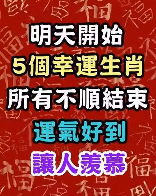 大家之前可能遇到一些不如意的事情,有時候會覺得自己的運氣特別背。 不過,好消息來啦!從明天開始,五個幸運屬相,所有不順和苦難將要結束了!福氣激活,運氣好到讓人羨慕!