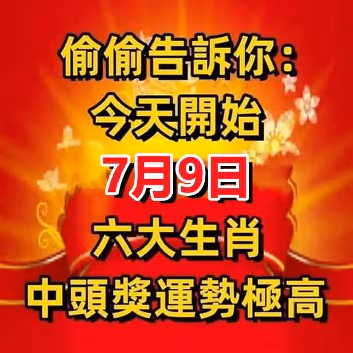 偷偷告訴你:今天開始(7月9號)中頭獎運勢極高的生肖有你嘛!