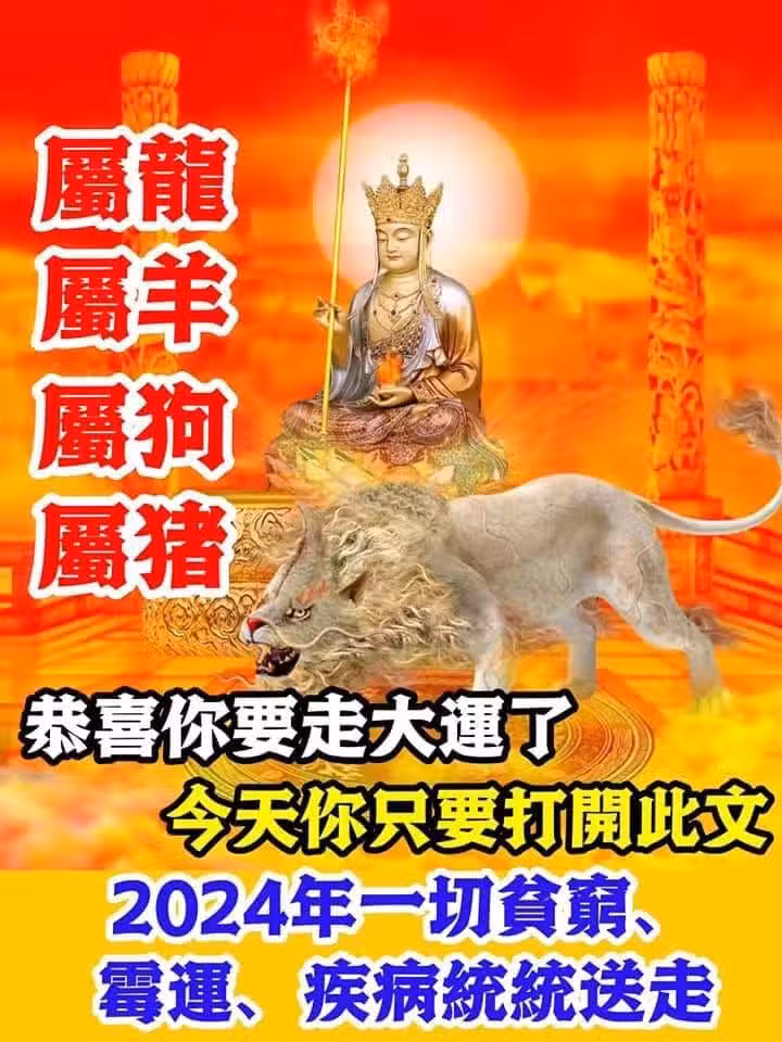 生肖【屬龍 屬羊 屬狗 屬豬】恭喜你要走大運了!今天你只要打開此文,2024年一切貧窮、霉運、疾病統統送走!