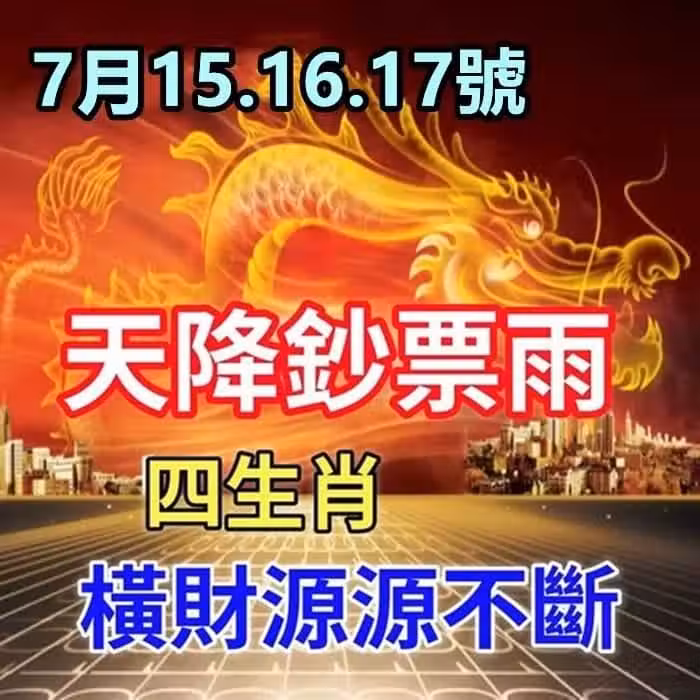 7月15.16.17號天降鈔票雨,橫財源源不斷的生肖快來接