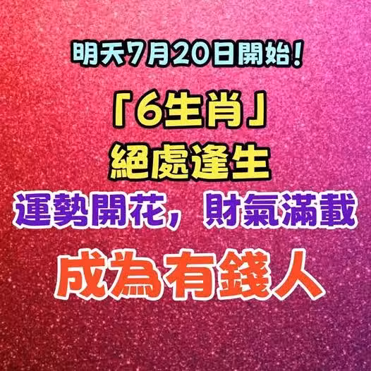 明天7月20日開始! 「6生肖」絕處逢生,運勢開花,財氣滿載:成為有錢的人