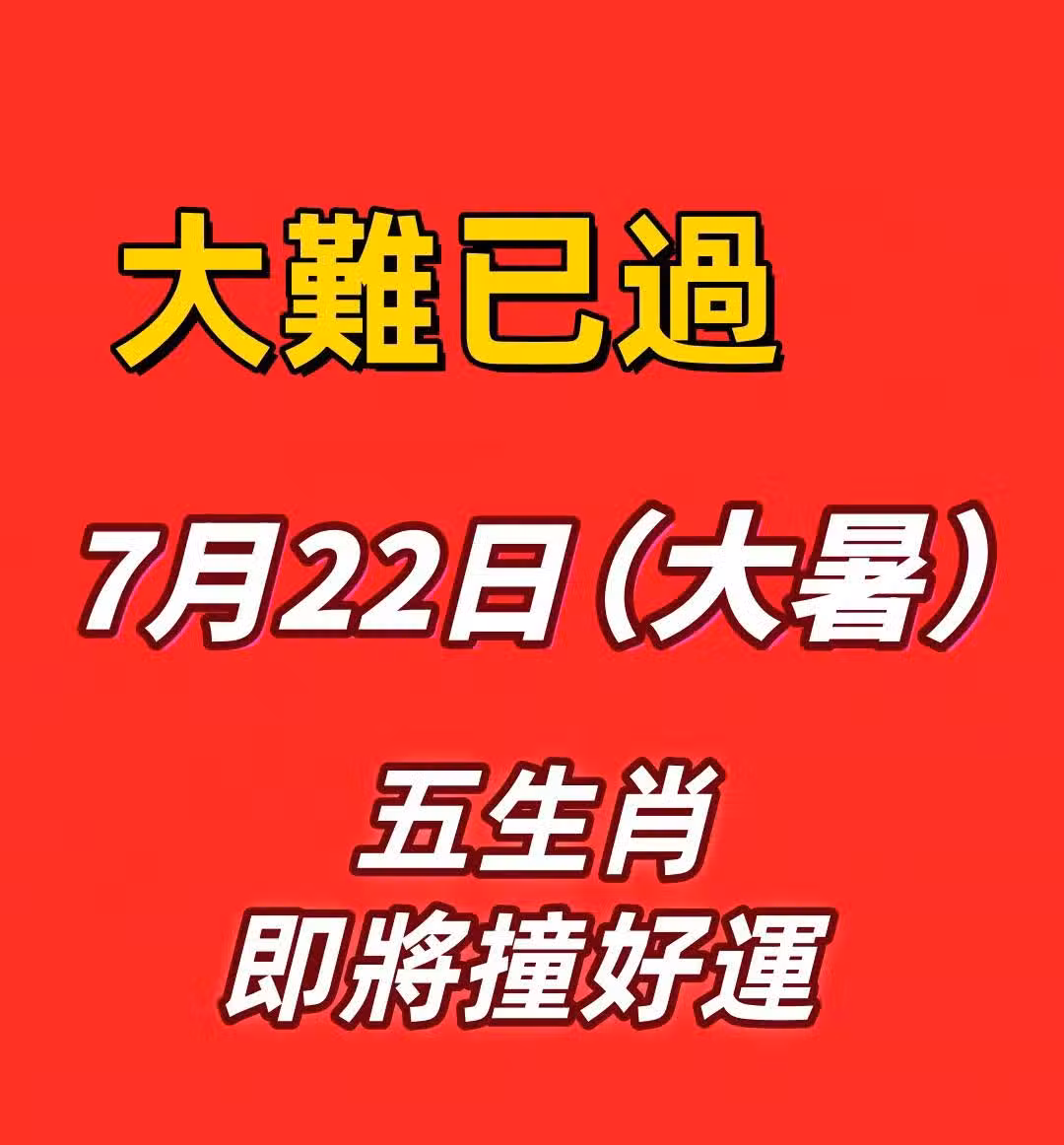 大難已過 7月22日(大暑)開始 五生肖 即將撞好運
