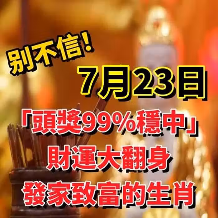 7月23日「頭獎99%穩中」財運大翻身,發家致富的生肖!
