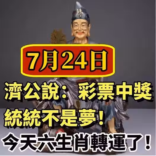 濟公說:7月24日,就在今天六生肖轉運了 !
