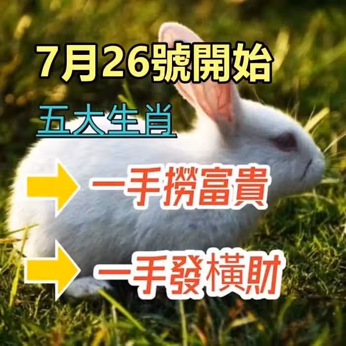 7月26號開始一手撈富貴,一手發橫財的生肖