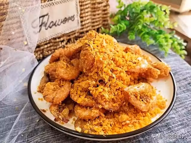 【準備食材】蝦,麵包糠,澱粉,大蒜,鹽,料酒,糖