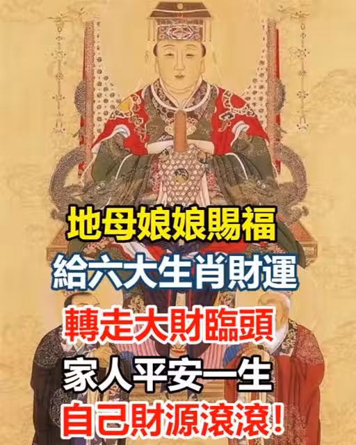 地母娘娘賜福給六大生肖財運,轉走大財臨頭,家人平安一生,自己財源滾滾!