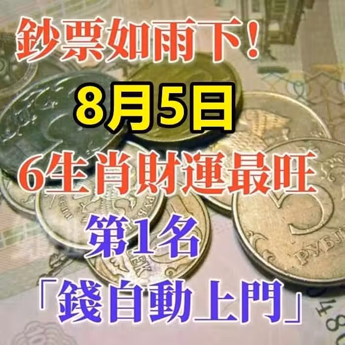 鈔票如雨下!8月5日,6大生肖財運最旺,第1名「錢自動上門」