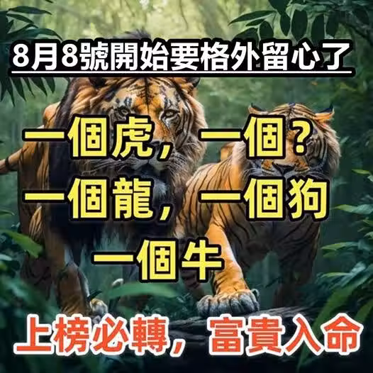 8月8號開始要格外留心了,一個虎,一個?一個龍,一個狗,一個牛必轉
