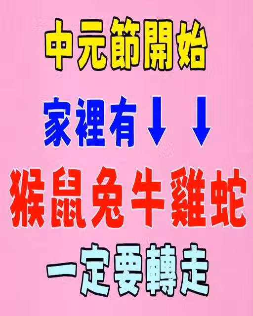 中元節開始家裡有生肖(猴鼠兔牛雞蛇)一定要轉走