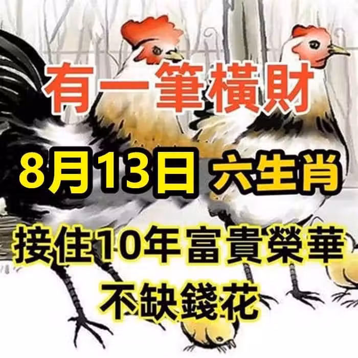 8月13日有一筆橫財的生肖,接住10年富貴榮華,不缺錢花有你嘛!