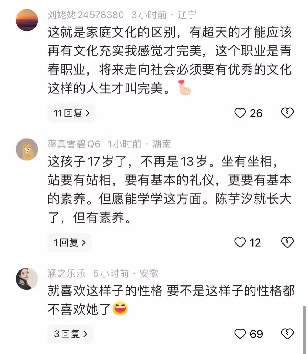 這位網友說:這就是家庭文化的區別,有超天的才能應該再有文化充實我感覺才完美,這個職業是青春職業,將來走向社會必須要有優秀的文化這樣的人生才叫完美。
