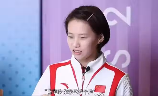 陳芋汐隨後緊接著插嘴說到,「說到這,我喜歡甩臉子。我進國家隊第一天就被說,『陳芋汐你老拉著個臉。』但其實我就長這樣,可能有些對自己跳得不太滿意的時候,不太能很好地控制自己的情緒。現在好點!」2個暴脾氣少女!全紅嬋:我脾氣不好,陳芋汐回應:我喜歡甩臉子。