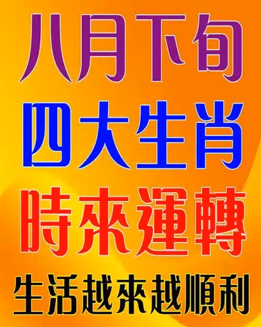 今天跟大家聊聊8月下旬的好運生肖。你知道嗎?有四個生肖的朋友們可要抓緊時機咯,幸運之神馬上就要來敲門啦!這四個生肖可真是時來運轉,不管之前過得怎麼樣,這波好運氣來了,絕對讓你們揚眉吐氣。哪四個生肖這麼走運呢?別急,茉莉姐這就告訴你們!
