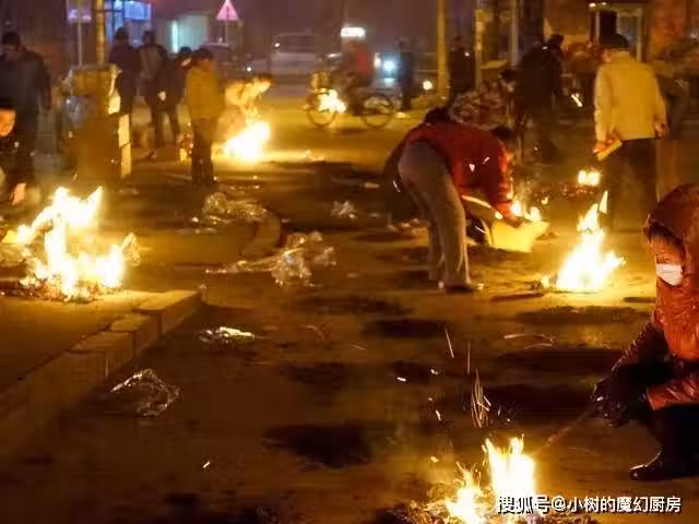農村的習慣上墳地里燒紙錢,而城市裡的人,一般都在十字路口,尤其到了晚上八九點鐘,人群特別多,記得上一次,我們這把路口都封了,因為車輛過多,怕引燃明火。