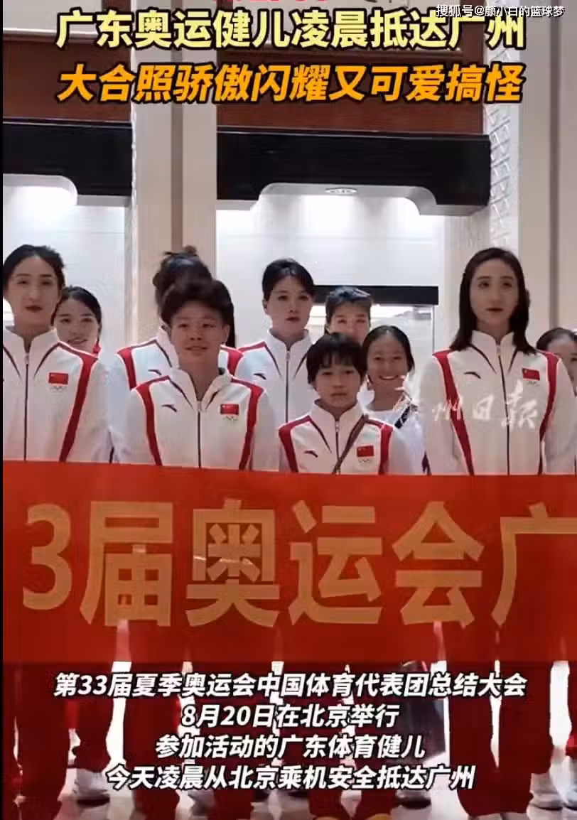 北京時間8月21日,廣東體育健兒於凌晨從北京乘機安全抵達廣州,廣東健兒本次有45人代表中國體育代表團參與了巴黎奧運會,6人獲8項10人次金牌、4人獲4項4人次銀牌、4人獲4項4人次銅牌,總計14人獲16項18人次獎牌。全紅嬋一人拿下兩枚金牌。