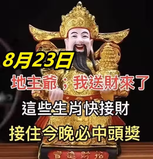 今天8月23日,地主爺說:我送橫財來了!這些生肖,今晚必中頭獎