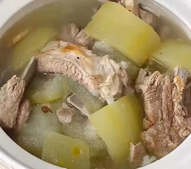 冬瓜排骨湯,湯鮮肉爛,營養美味,食材簡單,做法簡單,三十分鐘就好了,調了一碗料汁,蘸著排骨冬瓜吃,真好吃。