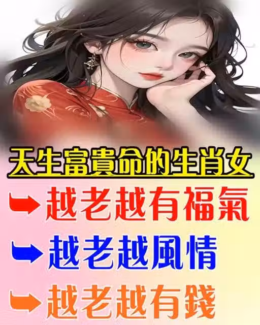 你說這世上啊,有些人就是含著金湯匙出生的,想不富貴都難。而有些姐妹呢,雖然年輕時可能平平無奇,但隨著年齡增長,反而越來越有魅力,越來越有福氣。這不,我今天就給大家揭秘五大生肖女,她們可都是越老越有福氣,越老越風情,越老越有錢的主兒!咱們一起來看看,你是不是就在其中呢?