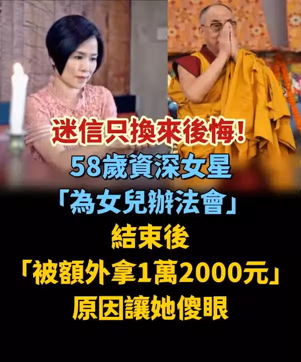 迷信只換來後悔!58歲資深女星「為女兒辦法會」 結束後「被額外拿1萬2000元」原因讓她傻眼