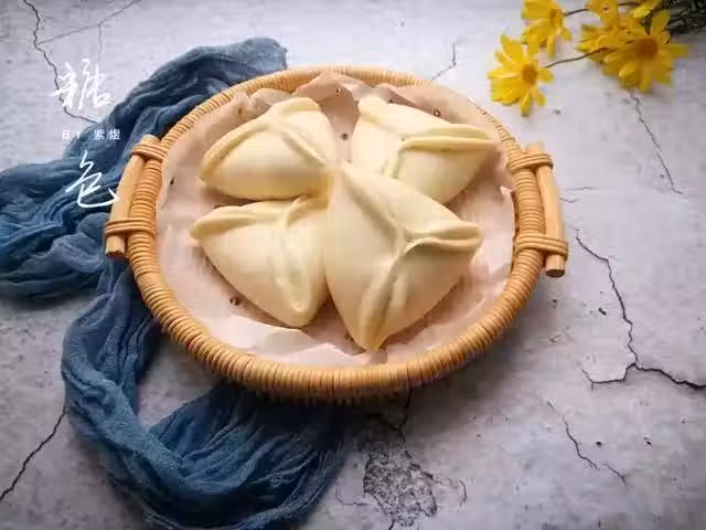 原料:麵粉500克,酵母5克,泡打粉3克,糖餡200克
