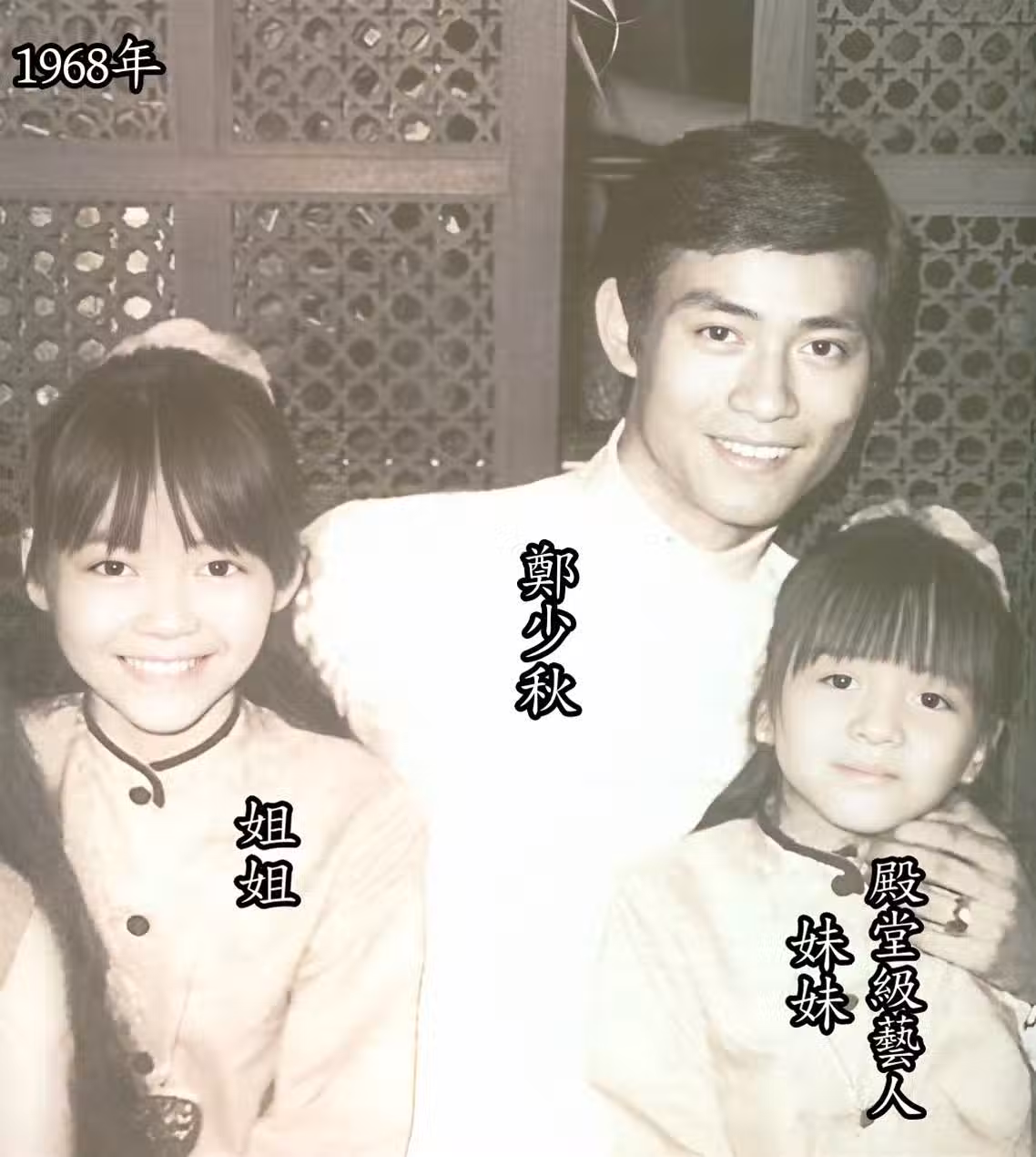 1968年的一張舊照片中,年輕的鄭少秋懷裡依偎著一位天真爛漫的小女孩。 這幅溫馨的畫面讓人倍感懷念。