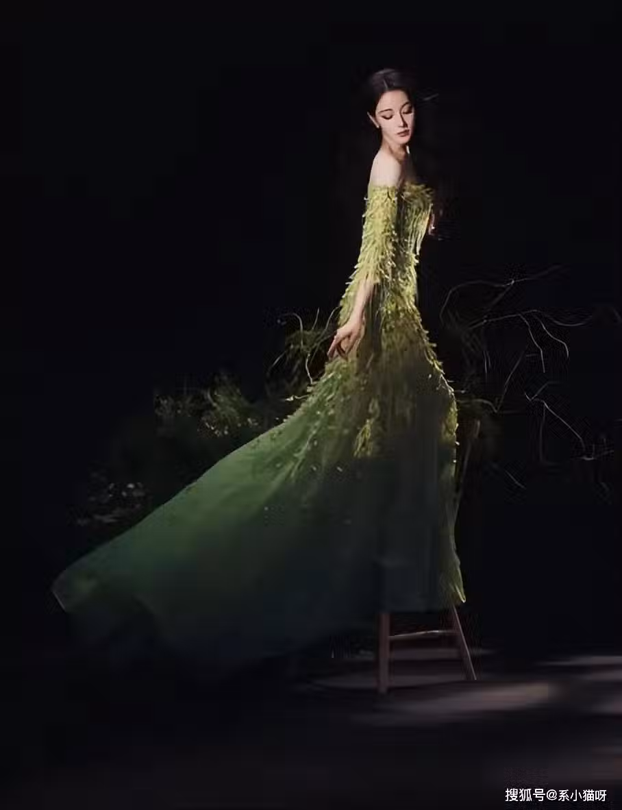 迪麗熱巴新造型曝光:綠眼影搭配羽毛流蘇,,宛若自然仙境之美