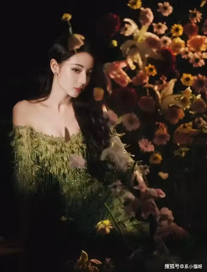 迪麗熱巴新造型曝光:綠眼影搭配羽毛流蘇,,宛若自然仙境之美