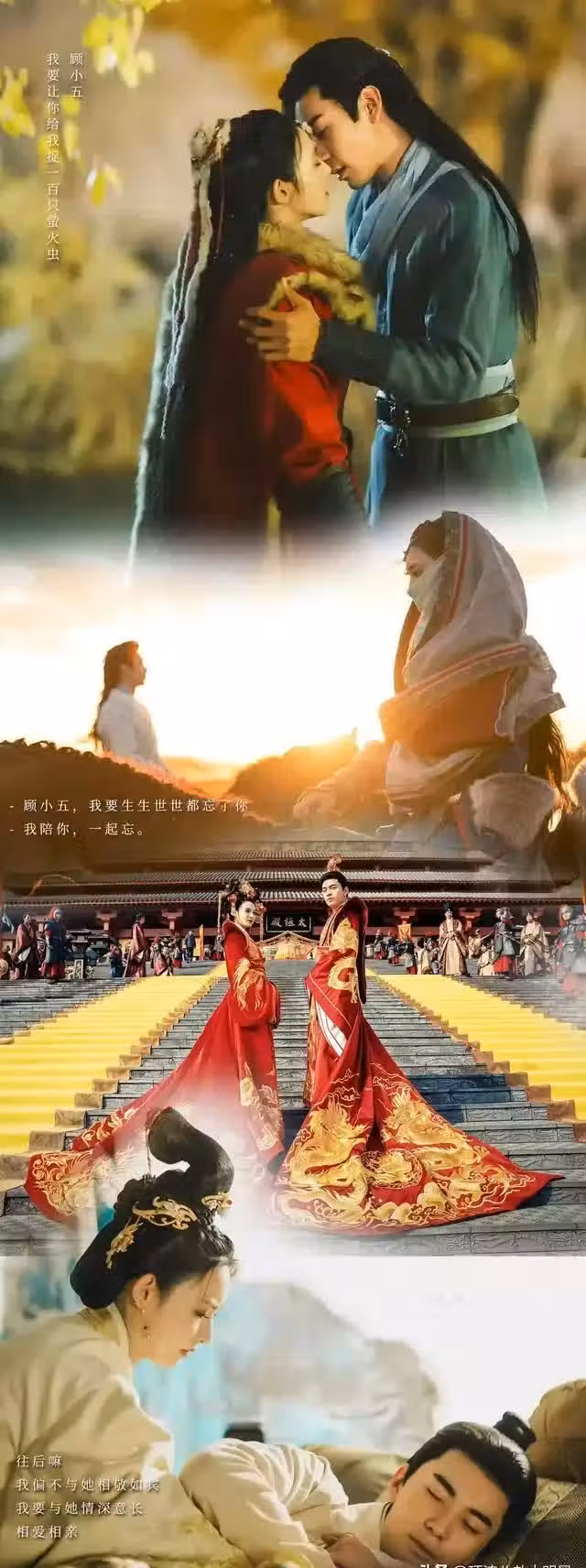 然而造化弄人,兩人已然忘記了對方及和對方相關的一切,可是他們也終將躲不過命運,還走到了一起,開始了有名無實的婚姻。小楓憶起了曾經,她的愛恨中兩難想離開,李承鄞卻不讓、小楓跳下城樓就說了:「李承鄞我會是你永遠忘不掉的人嗎?李承鄞我原諒你了,原諒我們的甜蜜、虧欠、奢望、絕望、我選擇放了你,也放了我自己,從此以後在無糾葛」到了最後小楓自刎了。