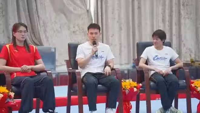 5日,全紅嬋參加廣東省二沙體育訓練中心的交流會,奧運冠軍一起分享交流,全紅嬋笑著聽師哥師姐們發言。