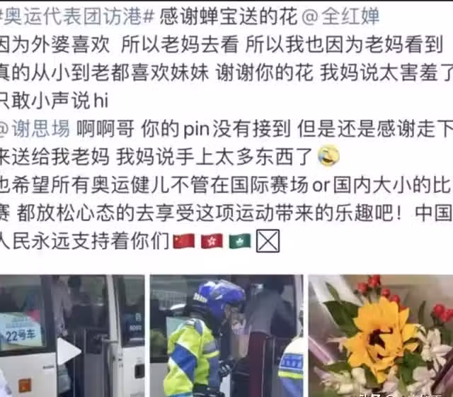 原來這個網友的外婆很喜歡全紅嬋。但由於自己外婆年事已高,不能親自去現場看嬋寶,於是網友就和媽媽一起替外婆追星,網友和媽媽一起去了運動員們的活動現場。