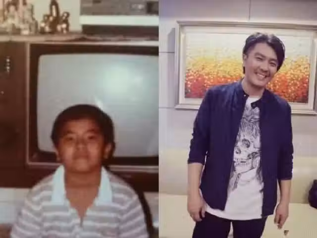 阿杜自曬童年照和近照比較,小時候的阿杜也是胖嘟嘟的。