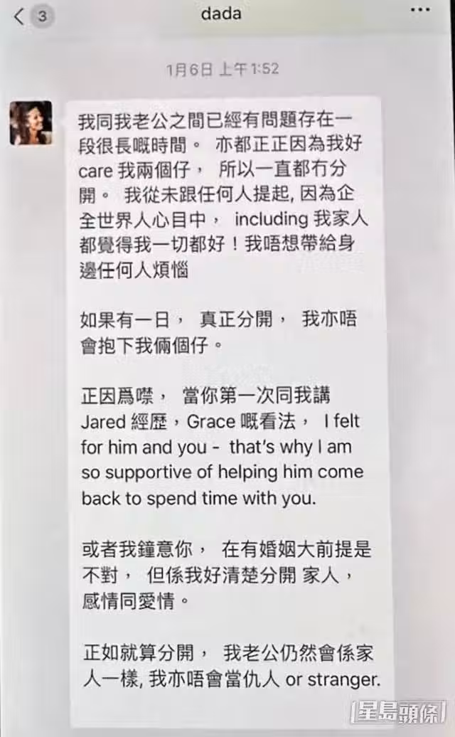 最後鄭梓浩為了錢,2月14日再回Grace身邊:「他叫我信多他一次,說自己只是誤入歧途,還給訊息我看『老婆,不關我事的,你看下她,全部是她主動.. 』甚至形容孫美賢不男不女,好似阿婆一樣好恐怖,對她沒興趣,還說她搞我,都搞我不起。」
