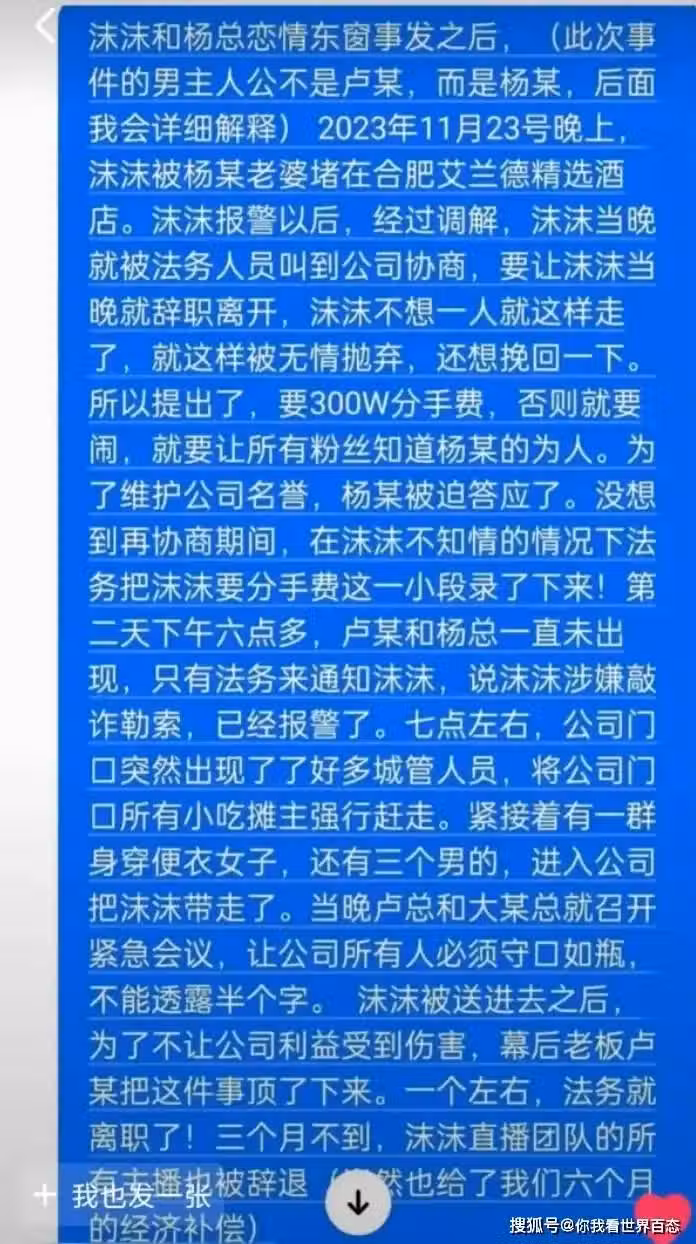 至於沫沫為何被抓,沫沫的前助理曾經爆料過,前老闆也評價過這個說法,稱有80%是真實的。