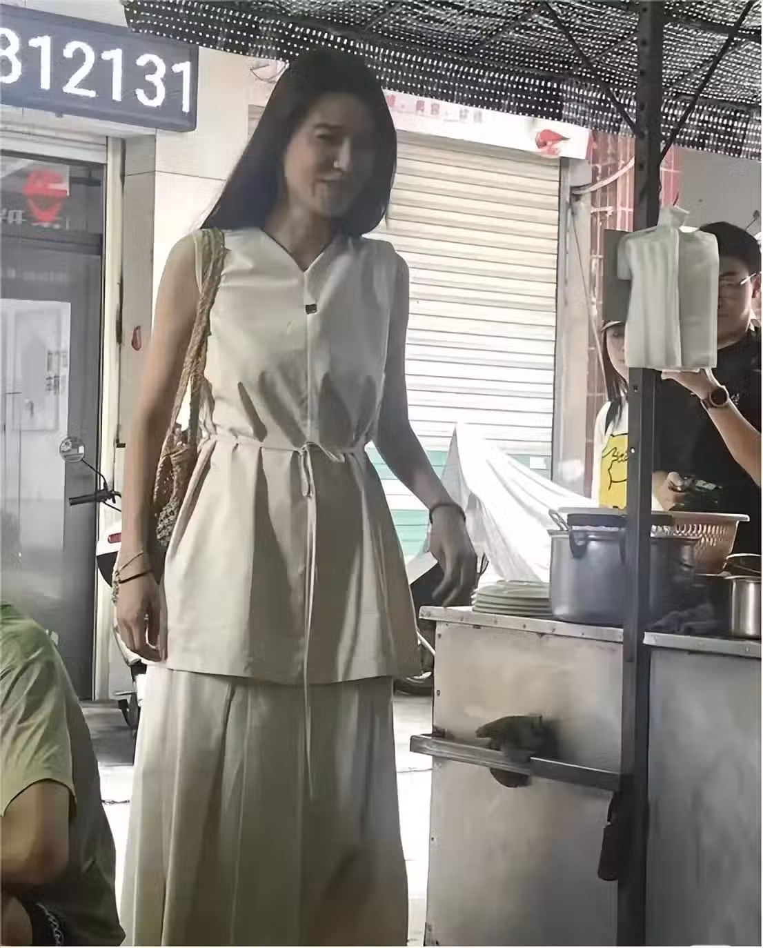 只見該網民分享的照片中,黃翠如披著一頭黑色秀髮,很有文藝女青年的感覺,她身著一套較為寬鬆的米白色半身裙,搭配一雙休閒鞋。