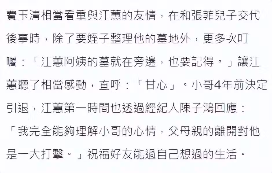 江蕙患癌,費玉清發聲回應,丁克的他曾深情告白:要葬在江蕙墓旁