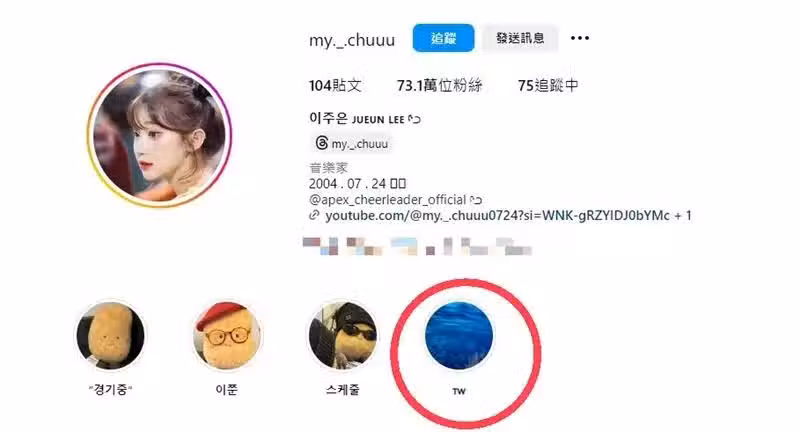 ▲李珠珢先前設了一個台灣的精選,版面上共有4個精選。(圖/翻攝自IG)