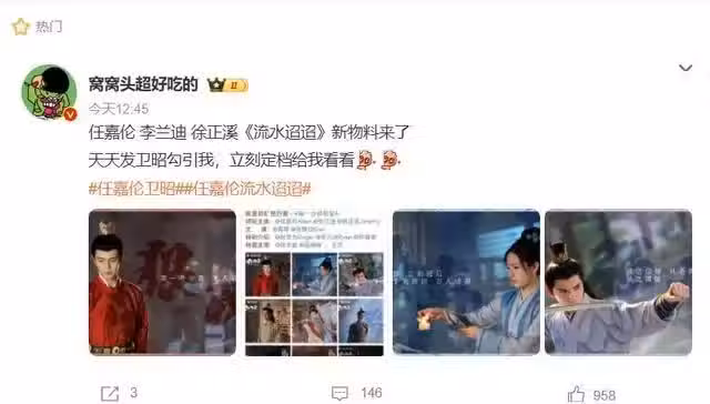 任嘉倫《流水迢迢》將播!新劇照令人眼前一亮,,女主女二都很美!