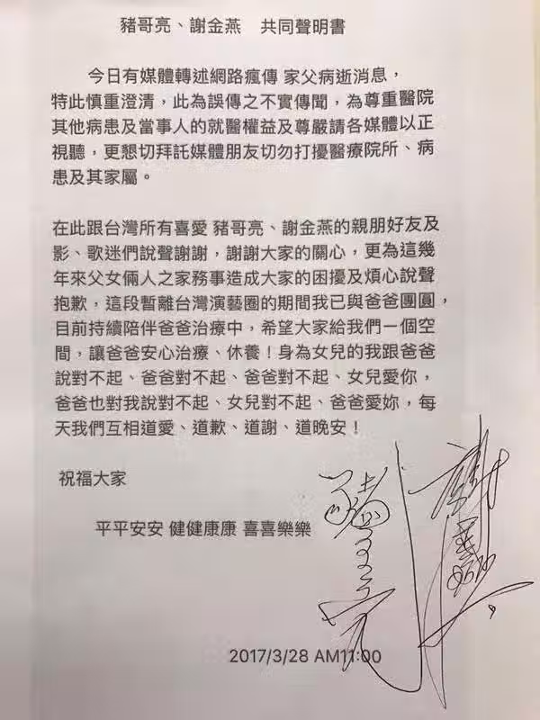 直到一紙聲明,人們才意識到,謝金燕終於在鏡頭之外,完成了與父親的重逢與和解。