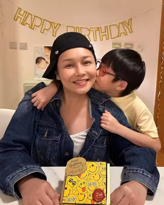 陳敏之昨日分享為好友嚴淑明慶祝生日的照片,可見陳敏之老公雷偉信與兒子雷子樂亦在場,嚴淑明更獲雷子樂緊抱及親臉幸福洋溢。