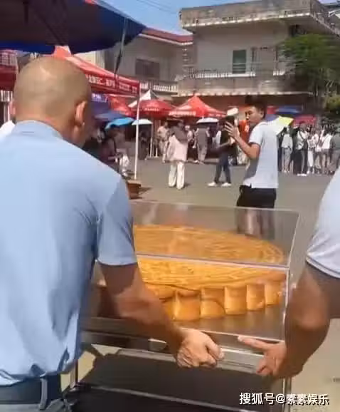 月餅正被師傅們推向全紅嬋老家,一路吸引了非常多的網友拍照,很喜慶的畫面。