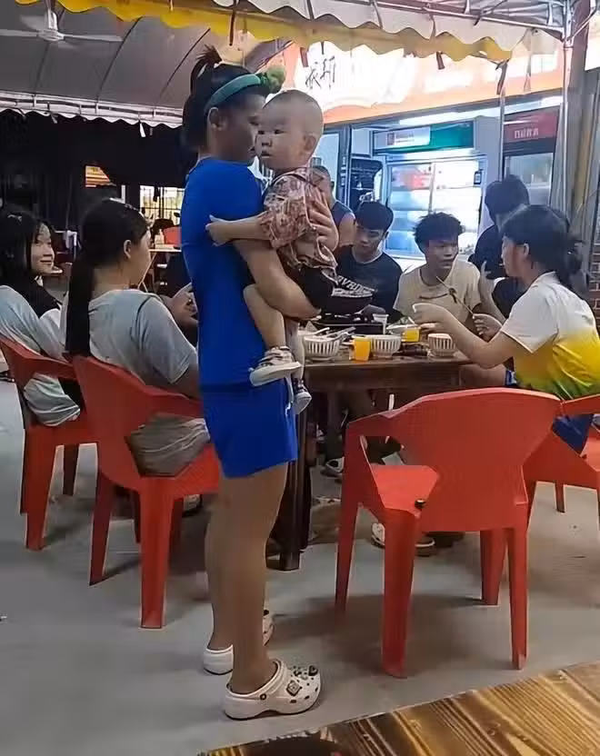 全紅嬋抱孩子吃大排檔,回家後越來越可愛,本地村民都很愛護她